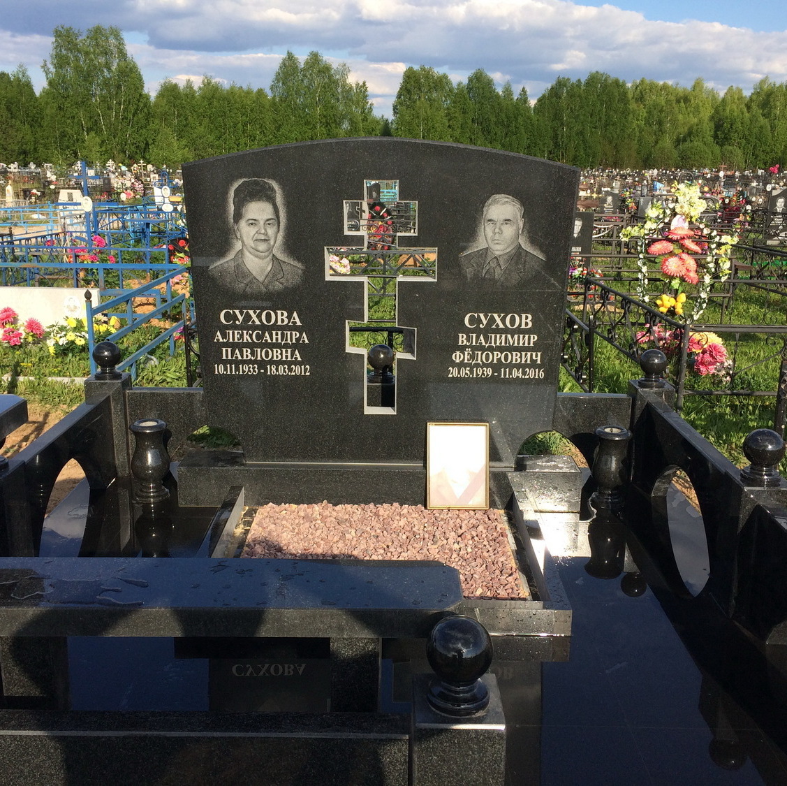 У нас собственное производство. Мы делаем памятники из гранита и мрамора, а так же изготавливаем ограды, кресты, цветники,столы и лавки, благоустраиваем места захоронения тротуарной и гранитной плиткой.